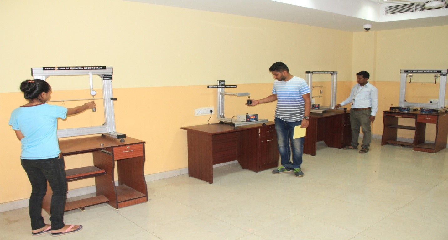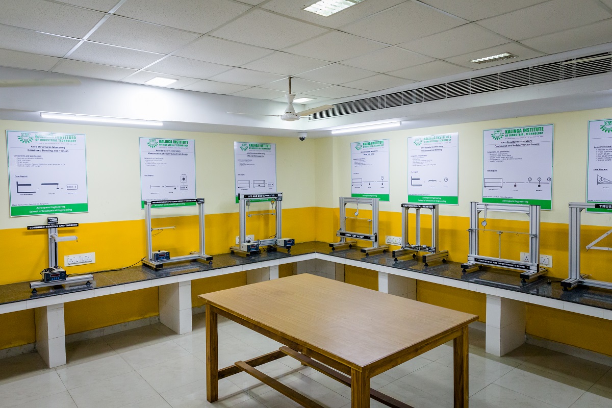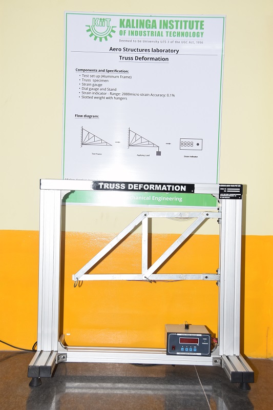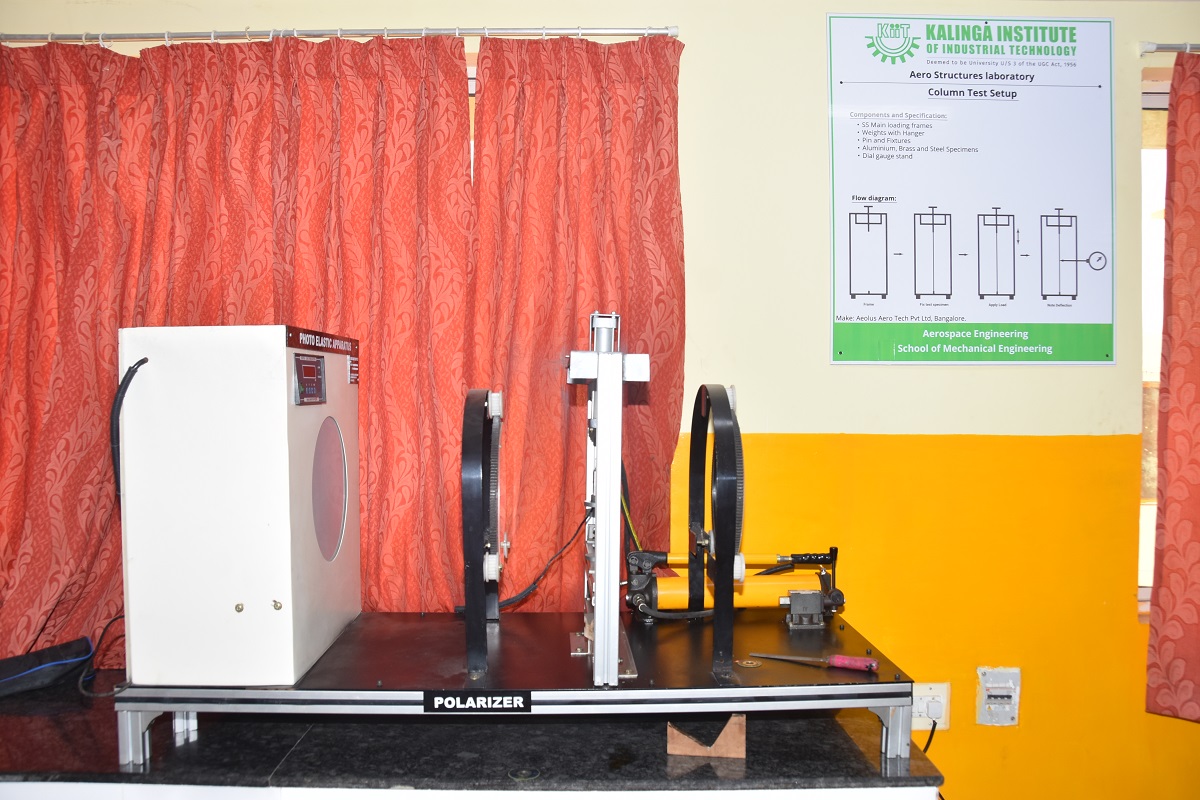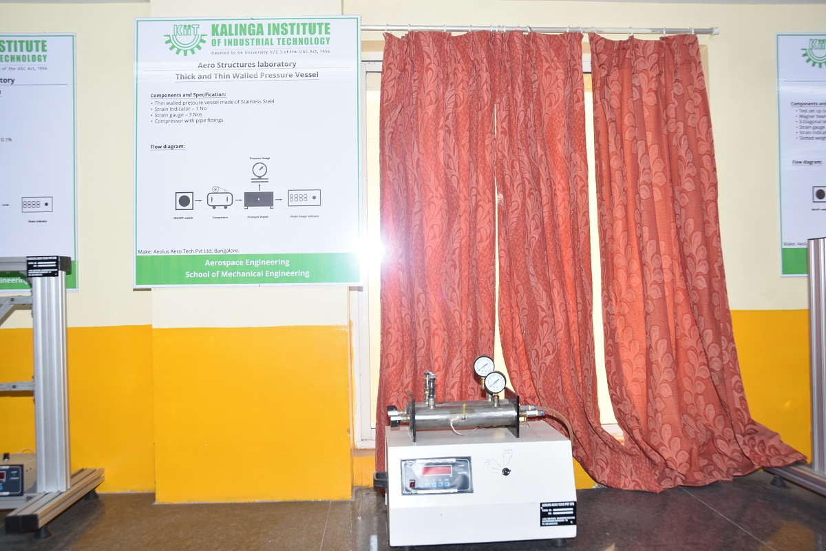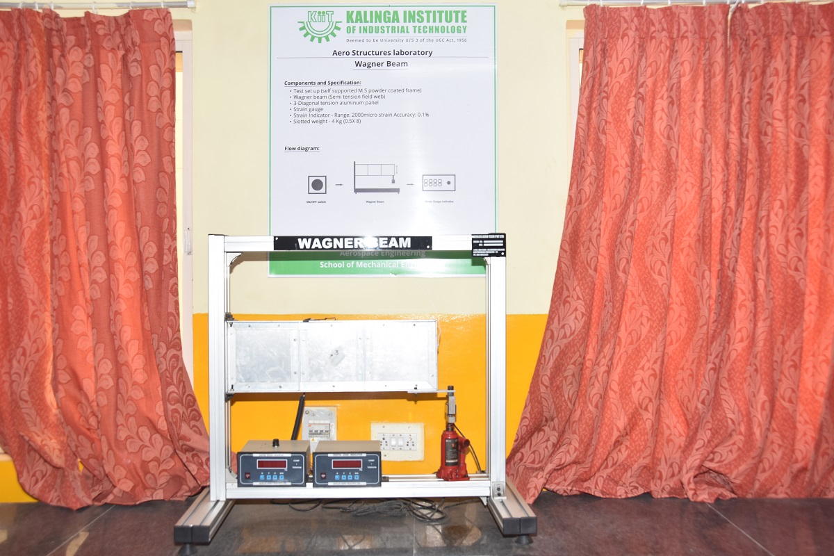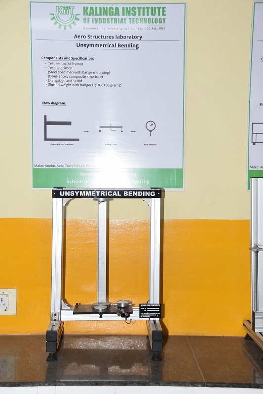 The objective of the Aero-structure laboratory is to understand and reinforce the concepts of mechanics of structures, which have applications in Aerospace domain. Students perform a wide variety of experiments using various setups viz., Column buckling apparatus, Thin walled cylindrical pressure vessel apparatus, Unsymmetrical Bending and Shear Centre measurement Apparatus, Strain Gauge Trainer Apparatus, Shear force in a beam apparatus, Deflection of Beams & Cantilevers Apparatus and Continuous and Indeterminate Beam Apparatus.